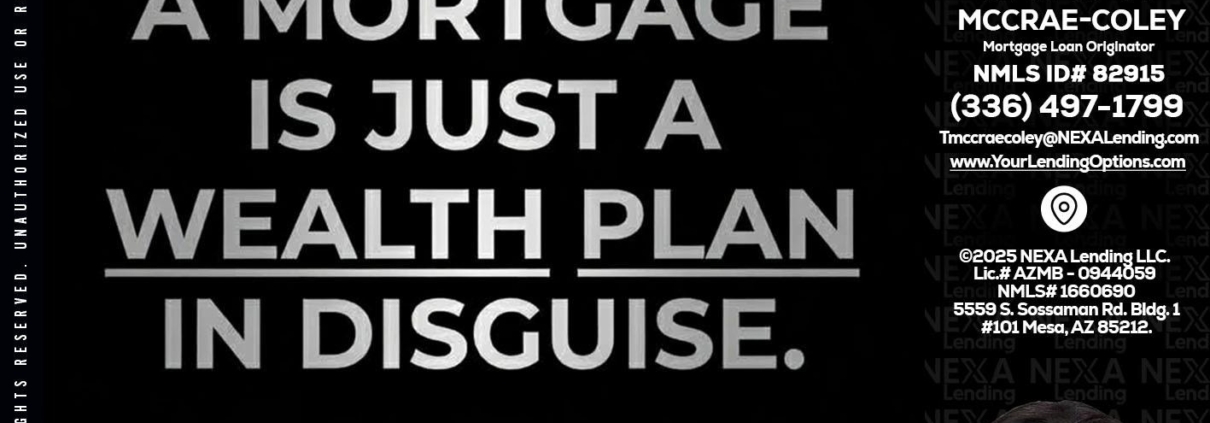 Hi, my name is Tammy C. McCrae-Coley. I’m a Loan Officer with NEXA Lending LLC., offering personalized mortgage solutions, fast customized quotes, great rates and service with integrity.