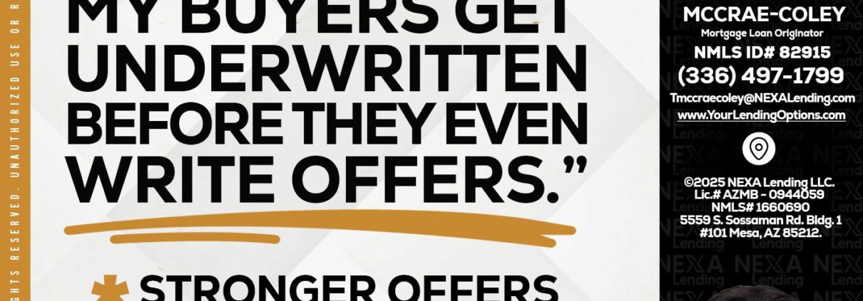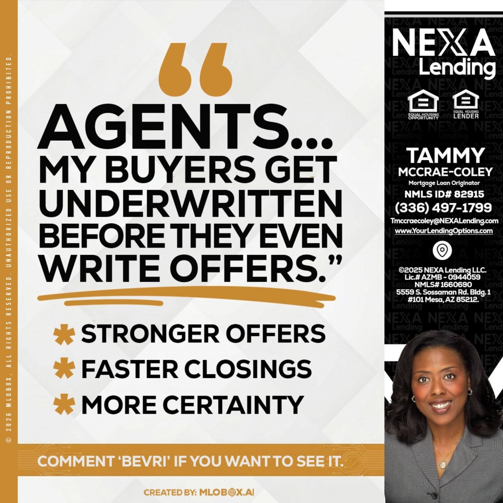 Hi, my name is Tammy C. McCrae-Coley. I’m a Loan Officer with NEXA Lending LLC., offering personalized mortgage solutions, fast customized quotes, great rates and service with integrity.