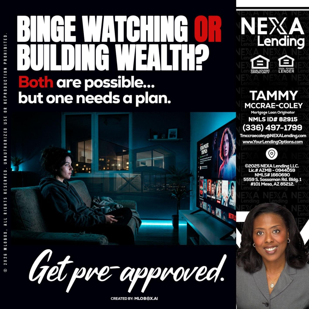 Hi, my name is Tammy C. McCrae-Coley. I’m a Loan Officer with NEXA Lending LLC., offering personalized mortgage solutions, fast customized quotes, great rates and service with integrity.