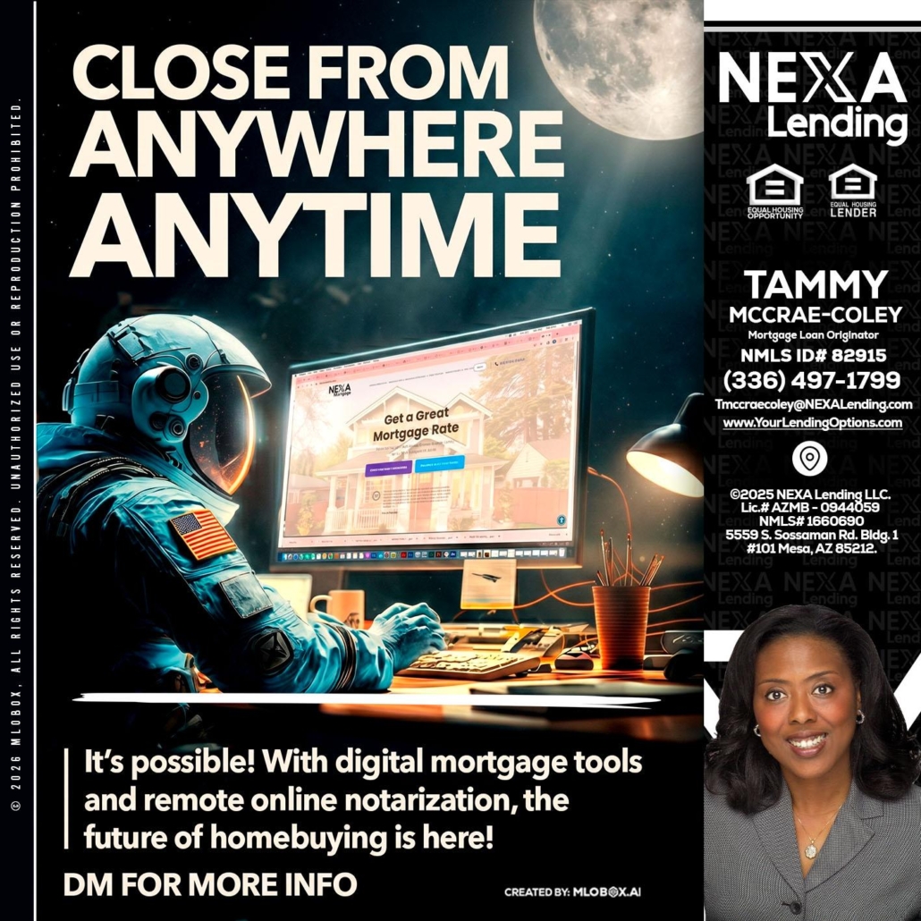 Hi, my name is Tammy C. McCrae-Coley. I’m a Loan Officer with NEXA Lending LLC., offering personalized mortgage solutions, fast customized quotes, great rates and service with integrity.