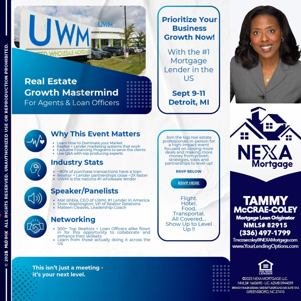Hi, my name is Tammy C. McCrae-Coley. I’m a Loan Officer with NEXA Mortgage LLC., offering personalized mortgage solutions, fast customized quotes, great rates and service with integrity.
