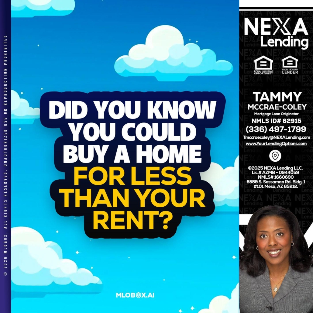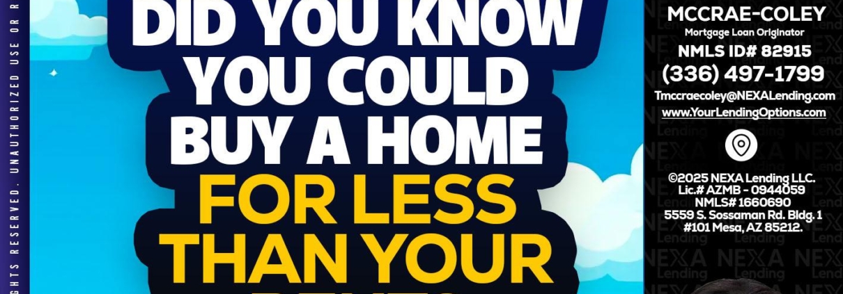 Hi, my name is Tammy C. McCrae-Coley. I’m a Loan Officer with NEXA Lending LLC., offering personalized mortgage solutions, fast customized quotes, great rates and service with integrity.