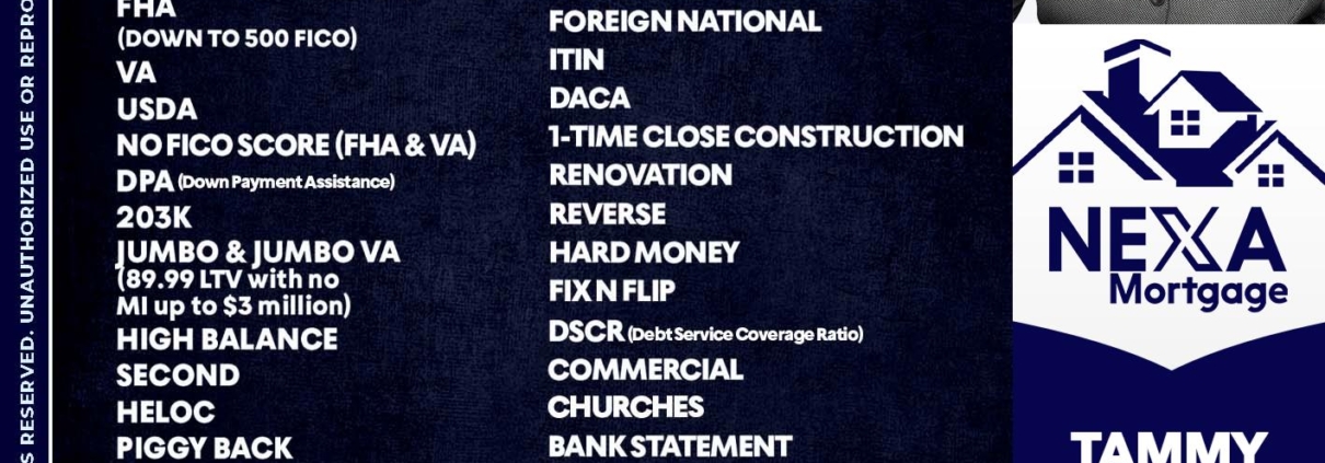 Hi, my name is Tammy C. McCrae-Coley. I’m a Loan Officer with NEXA Mortgage LLC., offering personalized mortgage solutions, fast customized quotes, great rates and service with integrity.