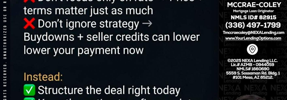 Hi, my name is Tammy C. McCrae-Coley. I’m a Loan Officer with NEXA Lending LLC., offering personalized mortgage solutions, fast customized quotes, great rates and service with integrity.