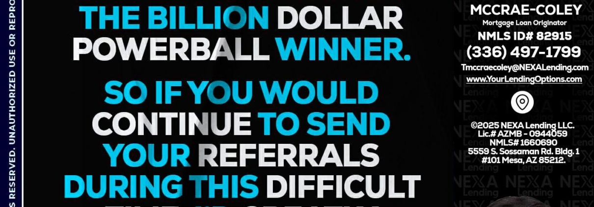 Hi, my name is Tammy C. McCrae-Coley. I’m a Loan Officer with NEXA Mortgage, LLC (1660690), offering personalized mortgage solutions, fast customized quotes, great rates and service with integrity.