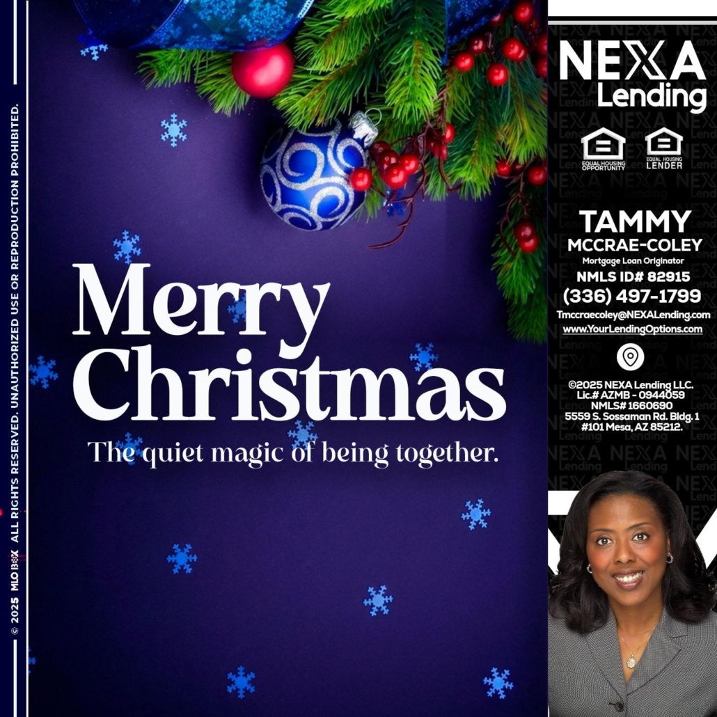 Hi, my name is Tammy C. McCrae-Coley. I’m a Loan Officer with NEXA Mortgage, LLC (1660690), offering personalized mortgage solutions, fast customized quotes, great rates and service with integrity.