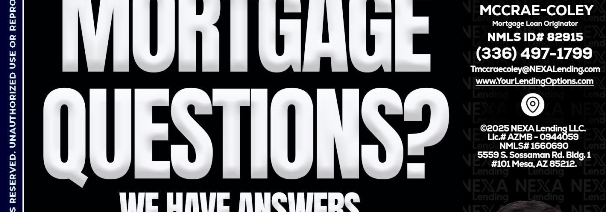 Hi, my name is Tammy C. McCrae-Coley. I’m a Loan Officer with NEXA Mortgage LLC., offering personalized mortgage solutions, fast customized quotes, great rates and service with integrity.