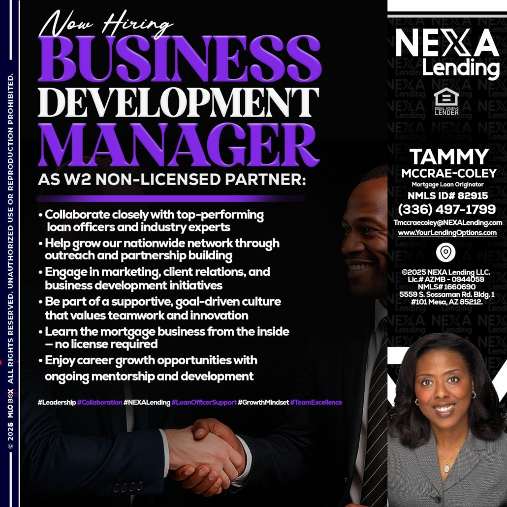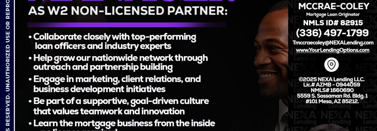 Hi, my name is Tammy C. McCrae-Coley. I’m a Loan Officer with NEXA Mortgage LLC., offering personalized mortgage solutions, fast customized quotes, great rates and service with integrity.