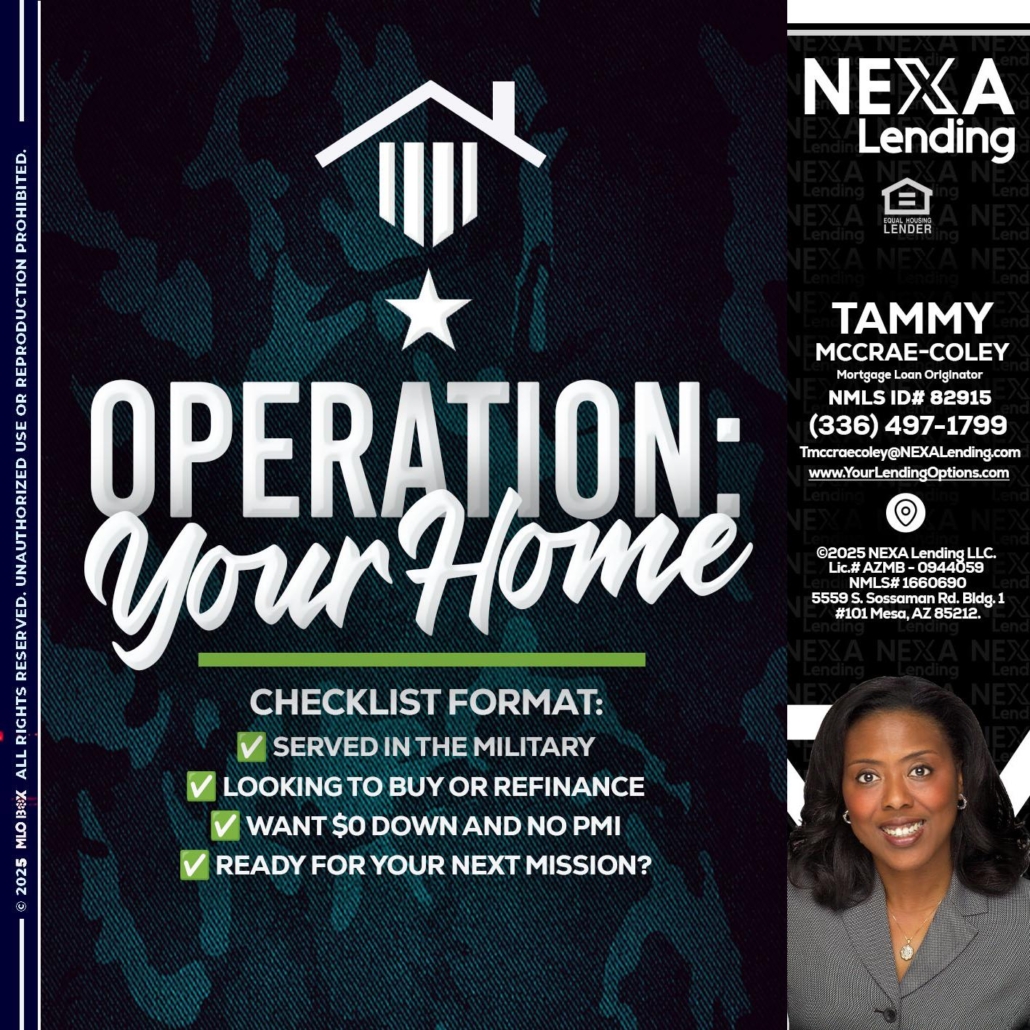 Hi, my name is Tammy C. McCrae-Coley. I’m a Loan Officer with NEXA Mortgage LLC., offering personalized mortgage solutions, fast customized quotes, great rates and service with integrity.