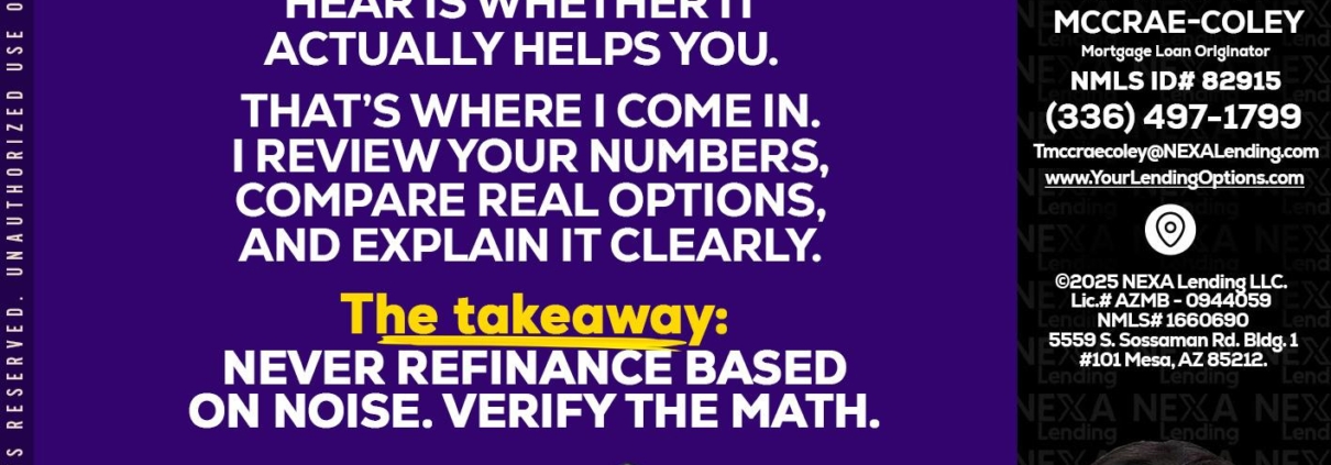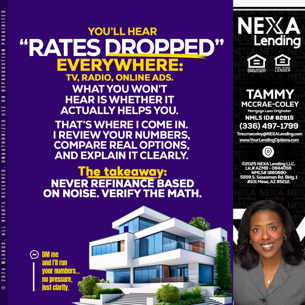 Hi, my name is Tammy C. McCrae-Coley. I’m a Loan Officer with NEXA Mortgage, LLC (1660690), offering personalized mortgage solutions, fast customized quotes, great rates and service with integrity.