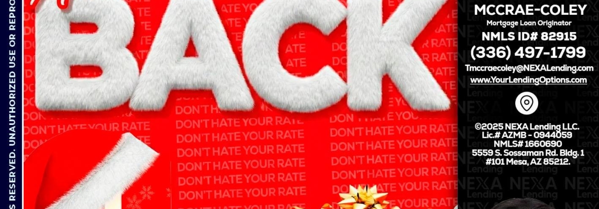 Hi, my name is Tammy C. McCrae-Coley. I’m a Loan Officer with NEXA Lending LLC., offering personalized mortgage solutions, fast customized quotes, great rates and service with integrity.