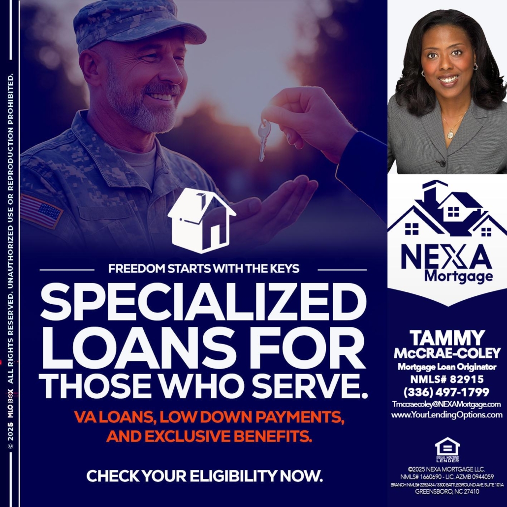 Hi, my name is Tammy C. McCrae-Coley. I’m a Loan Officer with NEXA Mortgage LLC., offering personalized mortgage solutions, fast customized quotes, great rates and service with integrity.