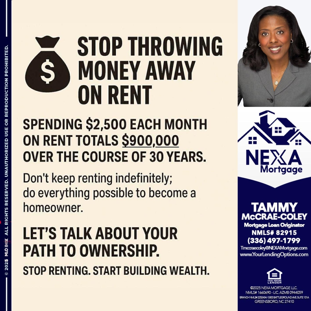 Hi, my name is Tammy C. McCrae-Coley. I’m a Loan Officer with NEXA Mortgage LLC., offering personalized mortgage solutions, fast customized quotes, great rates and service with integrity.