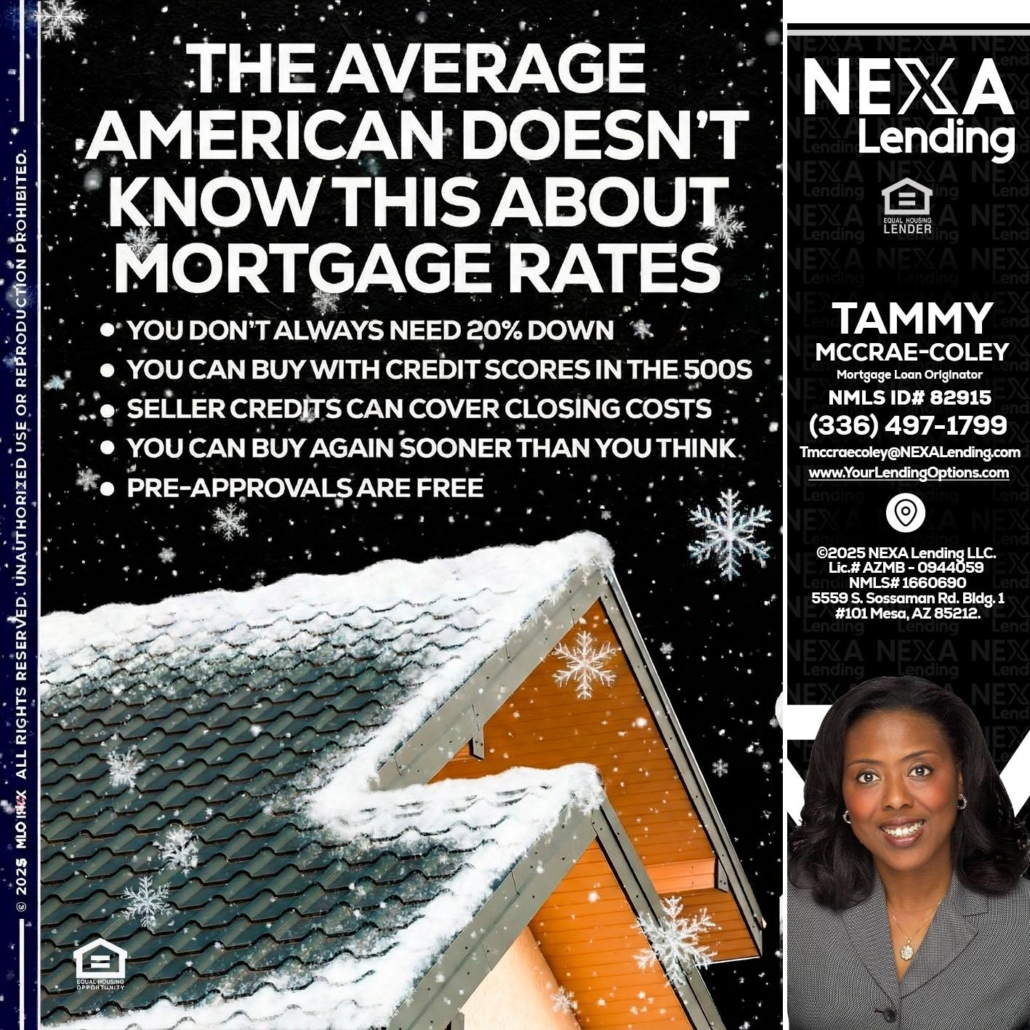 Hi, my name is Tammy C. McCrae-Coley. I’m a Loan Officer with NEXA Lending LLC., offering personalized mortgage solutions, fast customized quotes, great rates and service with integrity.