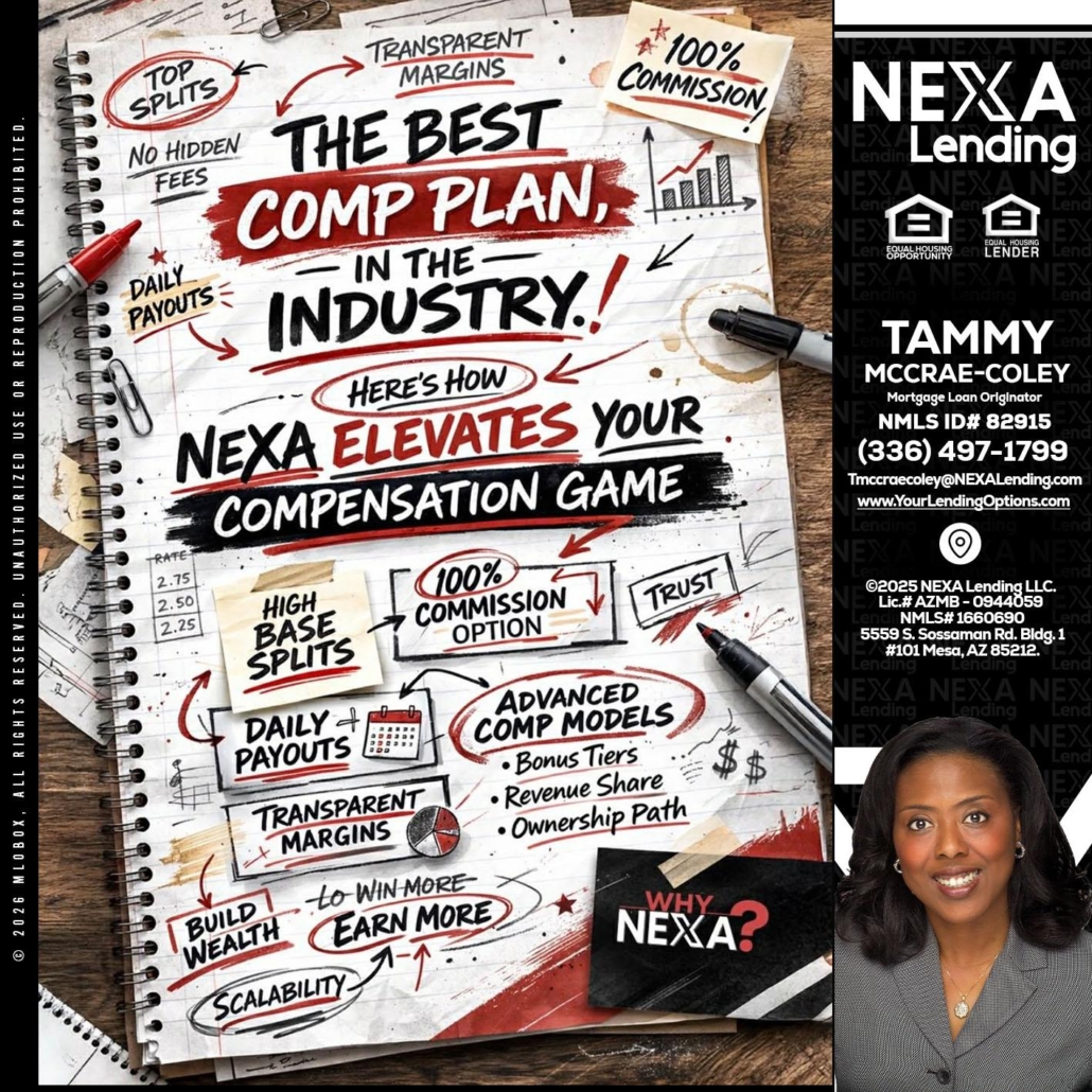Hi, my name is Tammy C. McCrae-Coley. I’m a Loan Officer with NEXA Lending LLC., offering personalized mortgage solutions, fast customized quotes, great rates and service with integrity.