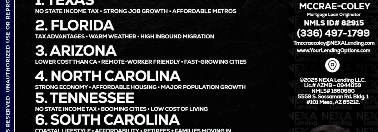 Hi, my name is Tammy C. McCrae-Coley. I’m a Loan Officer with NEXA Lending LLC., offering personalized mortgage solutions, fast customized quotes, great rates and service with integrity.