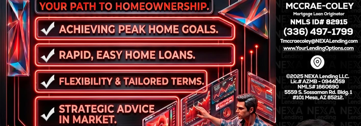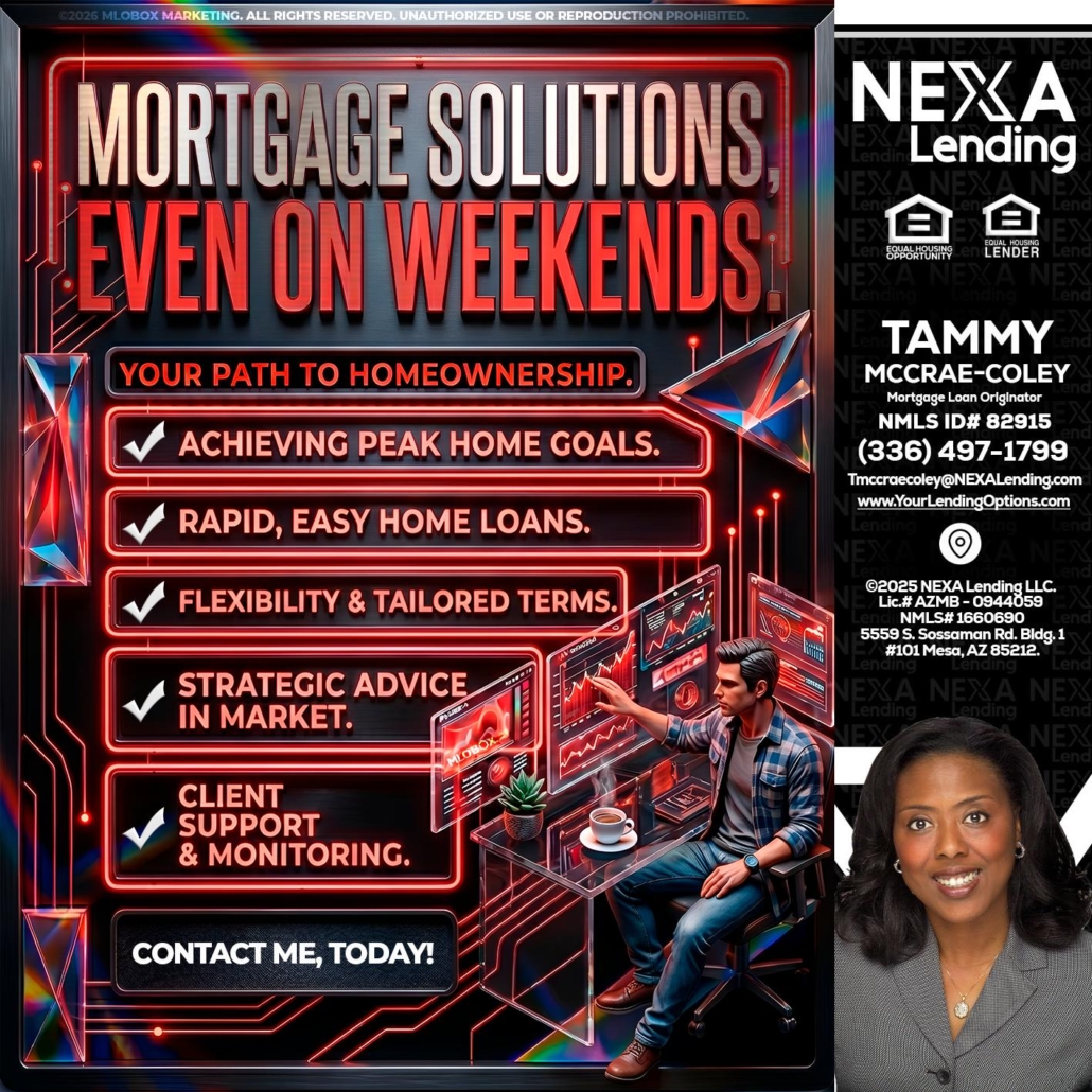 Hi, my name is Tammy C. McCrae-Coley. I’m a Loan Officer with NEXA Lending LLC., offering personalized mortgage solutions, fast customized quotes, great rates and service with integrity.