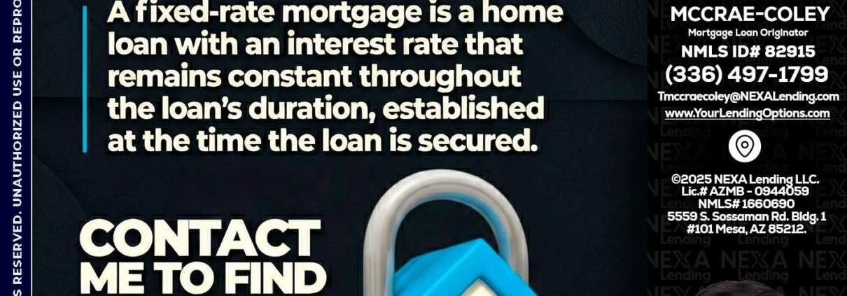 Hi, my name is Tammy C. McCrae-Coley. I’m a Loan Officer with NEXA Mortgage, LLC (1660690), offering personalized mortgage solutions, fast customized quotes, great rates and service with integrity.